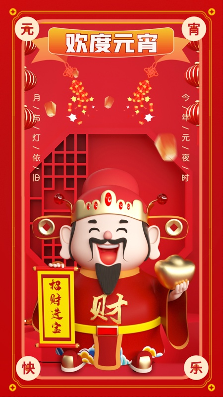 • Biểu Tượng Thần Tài 3D Nổi Bật: Hình ảnh Thần Tài (God of Wealth) phúc hậu, vui tươi được đặt ở vị trí trung tâm, tay cầm thỏi vàng lớn, tượng trưng cho sự giàu có, phú quý, và may mắn. Đây là lời chúc rõ ràng nhất cho một năm mới tài lộc dồi dào, kinh doanh phát đạt.