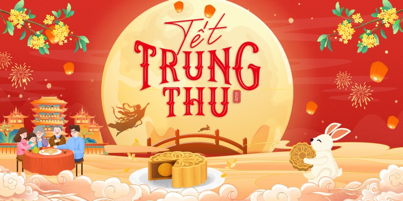 - Chữ “Tết TRUNG THU” và Vầng Trăng Tròn Đầy: