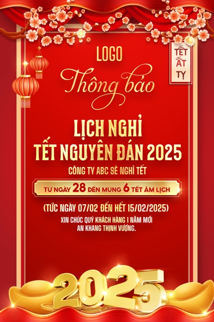 - Lan Tỏa Tinh Thần Lễ Hội: Mẫu thiết kế không chỉ thông báo mà còn truyền tải niềm vui, sự hân hoan và không khí lễ hội của Tết Nguyên Đán đến toàn thể nhân viên và đối tác.