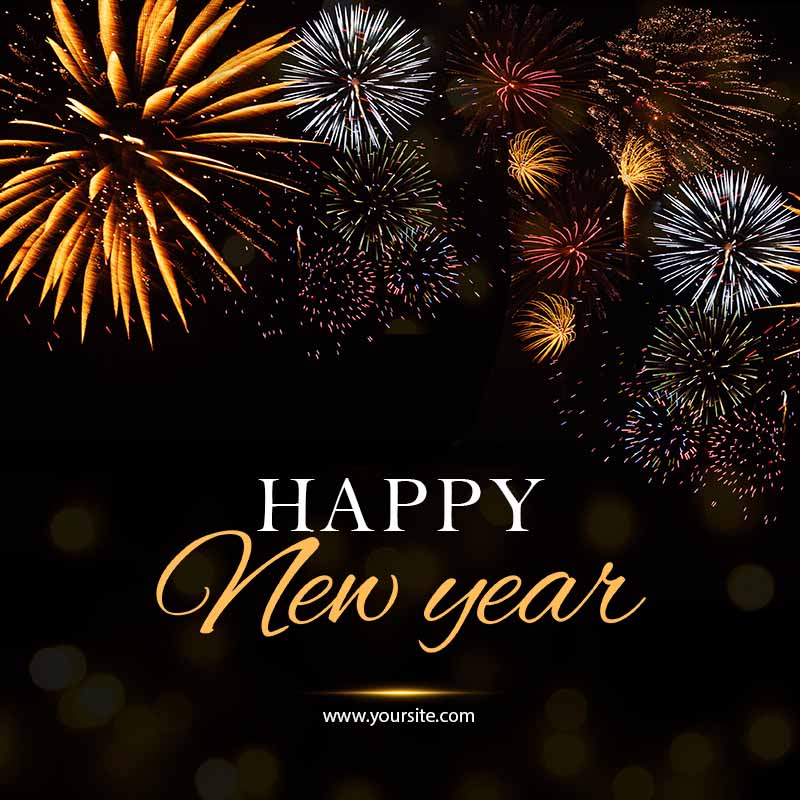 - Bố cục cân đối và trang trọng: Bố cục được sắp xếp một cách cân đối, làm nổi bật thông điệp “Happy New Year” và không khí lễ hội, tối ưu hóa cho định dạng khổ vuông, giúp thông điệp được hiển thị rõ ràng.