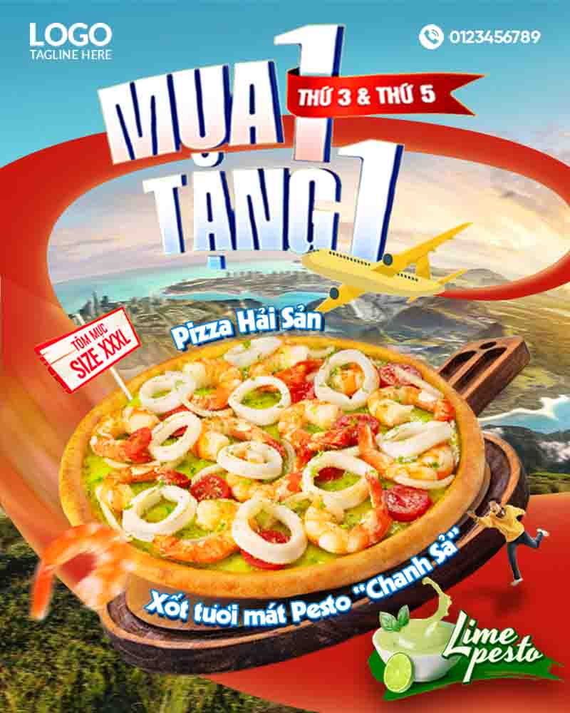Chào mừng bạn đến với Template Poster Pizza Hải Sản PSD – giải pháp hoàn hảo để bạn tạo ra những poster quảng cáo đầy năng lượng, chuyên nghiệp, giúp món ăn của bạn nổi bật giữa đám đông và thu hút mọi ánh nhìn.
