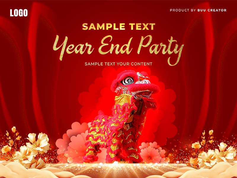 Điểm đặc trưng của template này là thiết kế trang trọng, nổi bật với tông màu đỏ và vàng chủ đạo – màu của may mắn, tài lộc và thịnh vượng – kết hợp hình ảnh linh vật của năm (ví dụ: chú chuột vàng cách điệu), cùng lồng đèn đỏ, pháo hoa và các họa tiết hoa văn truyền thống tinh xảo. Dòng chữ “Chúc mừng năm mới” và các thông điệp ý nghĩa khác được đặt tinh tế, tạo nên một tổng thể hài hòa và thu hút. Nền đỏ được tô điểm bằng các họa tiết vân chìm tinh tế, tạo chiều sâu và sự sang trọng. Mẫu thiết kế này không chỉ đẹp mắt mà còn có không gian rõ ràng để bạn thêm vào thông tin về sự kiện, chương trình khuyến mãi, hoặc lời chúc riêng của doanh nghiệp. Bố cục rõ ràng, dễ đọc, phù hợp để in ấn dưới dạng poster, standee, hoặc sử dụng trên các kênh truyền thông số.